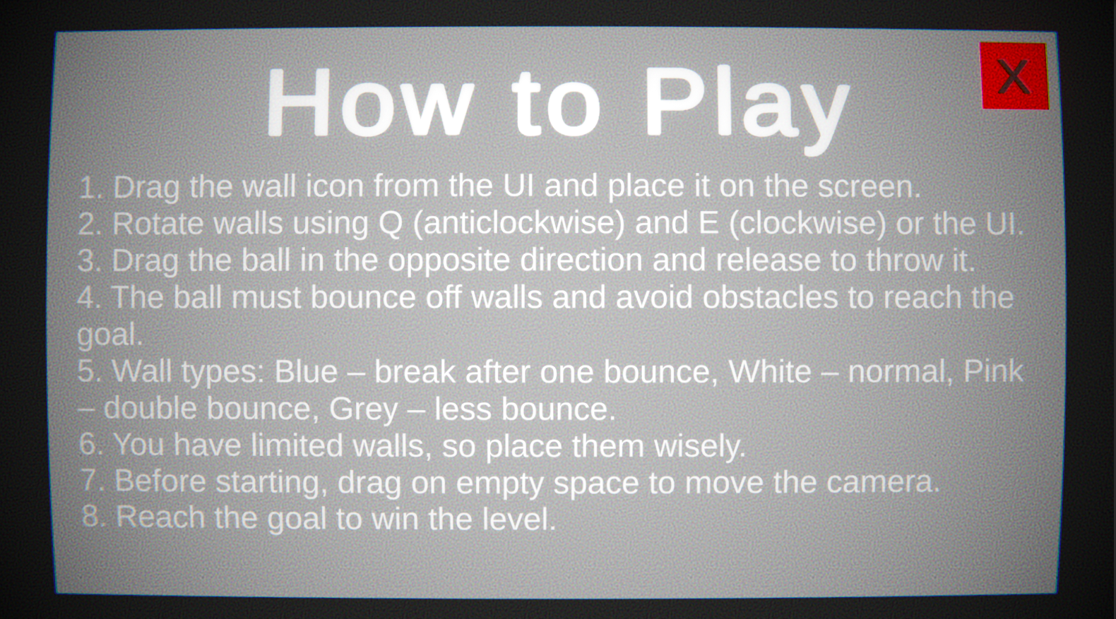 Place and rotate different types of walls to guide the ball toward the goal. Once everything is set, aim and launch the ball like in a golf game. Every move matters—there are limited walls, so smart placement and experimentation are key.